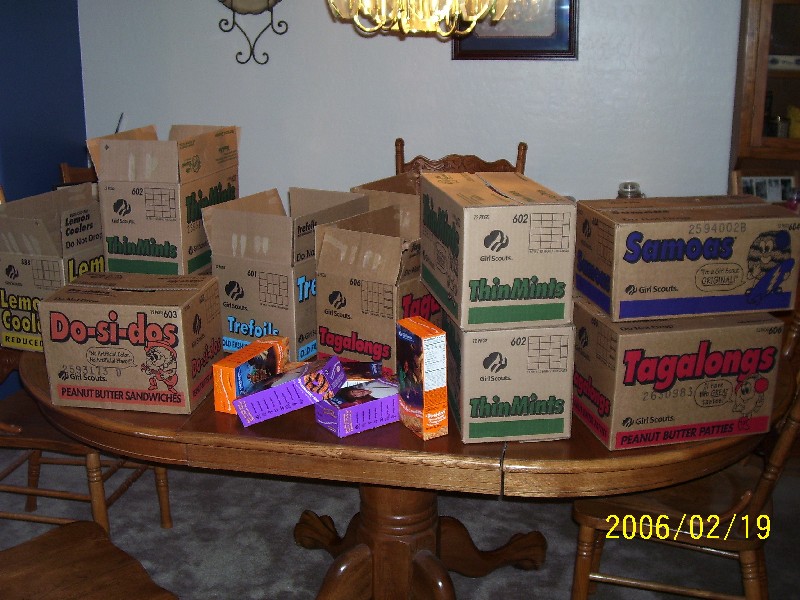We've got them stacked high and low. Lemon Coolers, Thin Mints, Trefoils, Do-si-Dos, Tagalongs, and Samoas are everywhere.